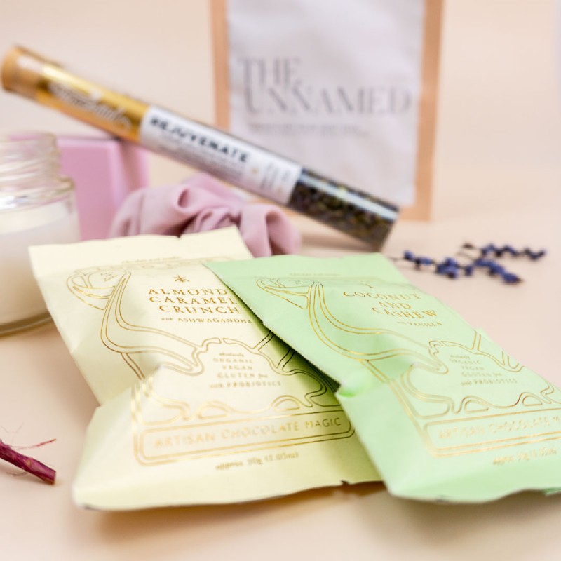 With tea, artisanal chocolate, a nourishing sheet mask, a candle, and a scrunchie, this luxury gift set has everything you need for a deluxe pampering session. Spoil your mind, body, and soul and get back to life feeling refreshed, relaxed, and ready to tackle anything that comes your way. Order this special set for yourself or a loved one and give the gift of self-care.